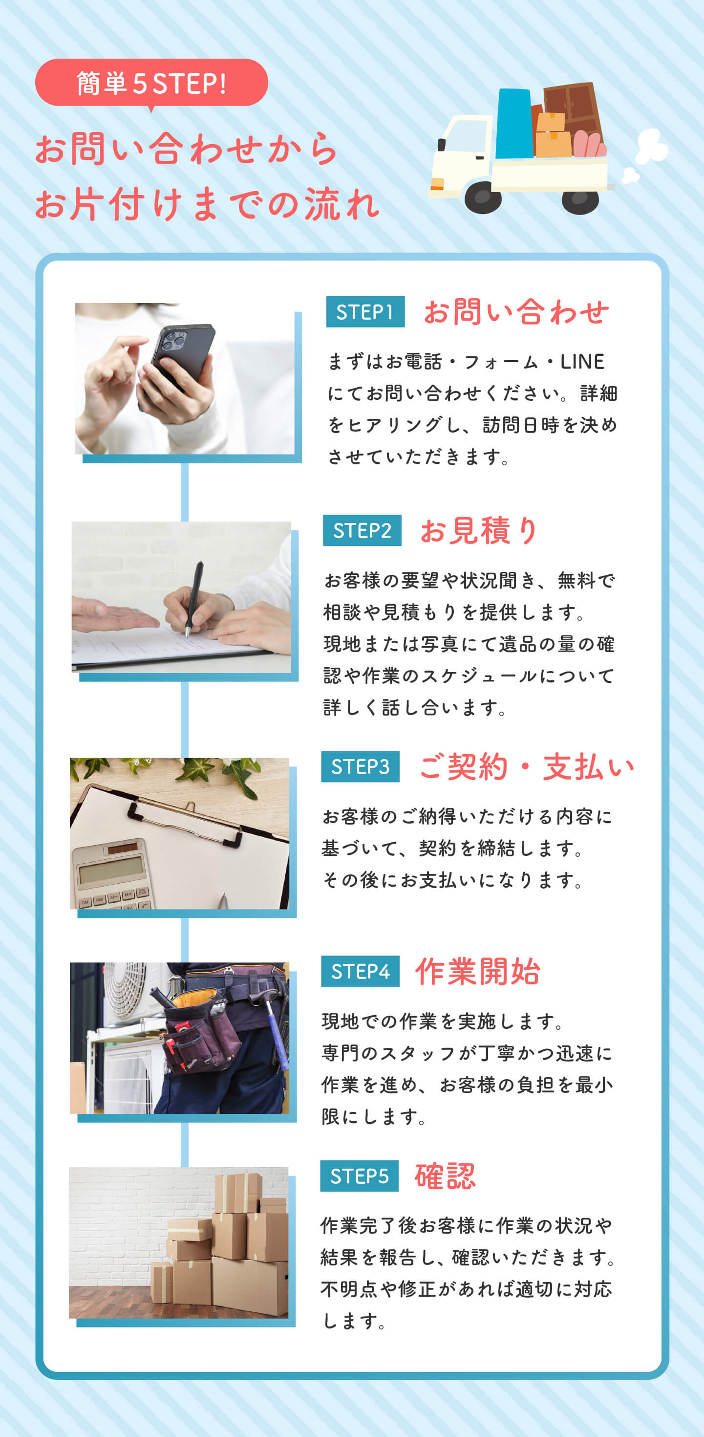 | 事業内容 | ハウスクリーニング、解体業、遺品整理 ※遺品整理(残置物撤去)はReliefのFC加盟店とし業務を実施いたします |